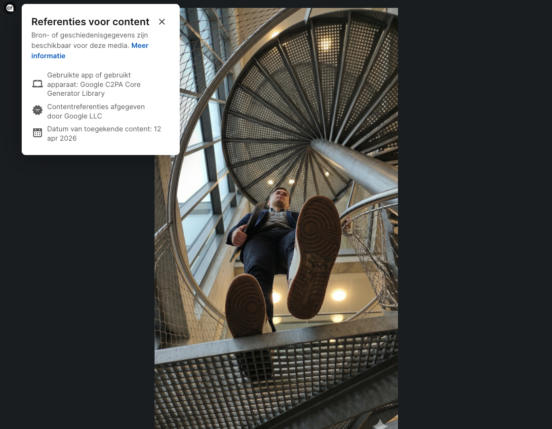 Je foto wordt gedeeld en gaat viraal. Miljoenen mensen zien hem, maar niemand weet wie hem maakte, wanneer of met welk apparaat. De fotograaf bestaat niet meer in de metadata. C2PA gaat daar iets aan verbeteren. Tegelijk is dit een manier om AI gegenereerde beelden te onderscheiden van ‘echte’ foto’s. Maar het roept tegelijk een ongemakkelijke vraag op: wordt authenticiteit straks iets wat je moet verdienen met een cryptografisch certificaat? Is iets onder cenrtificaat meteen nep?