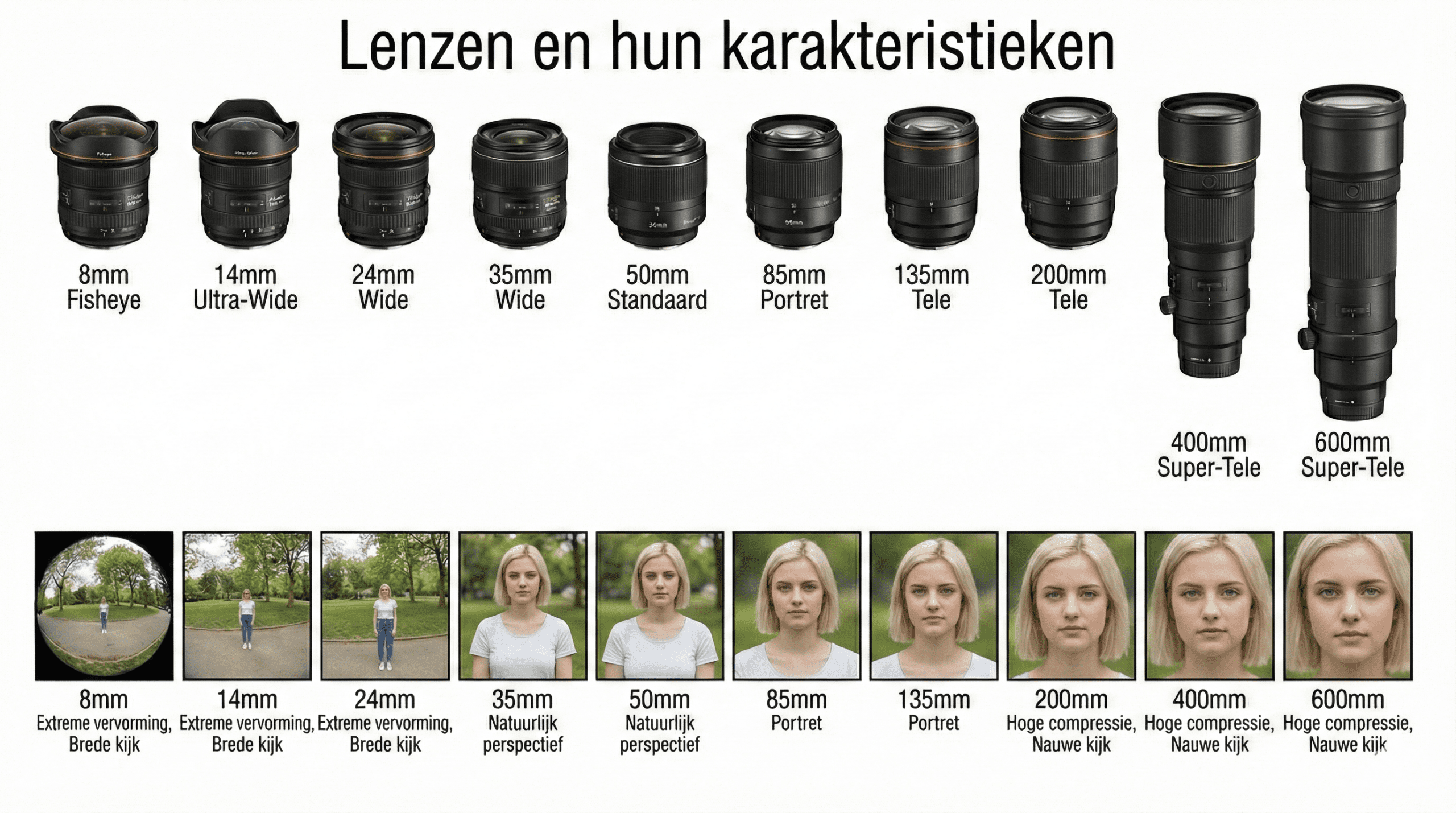 Je staat voor de vitrine van een fotowinkelier en staart naar tientallen objectieven. Welke heb je écht nodig? Die vraag hield mij vijftien jaar geleden ook bezig toen ik mijn eerste spiegelreflexcamera kocht. Het is een hele investering. Inmiddels heb ik duizenden opdrachten gedraaid en weet ik precies welke lens ik wanneer pak. In dit artikel leg ik je uit welke cameralenzen er bestaan, wat ze kosten en vooral: wanneer je ze inzet voor maximaal resultaat.