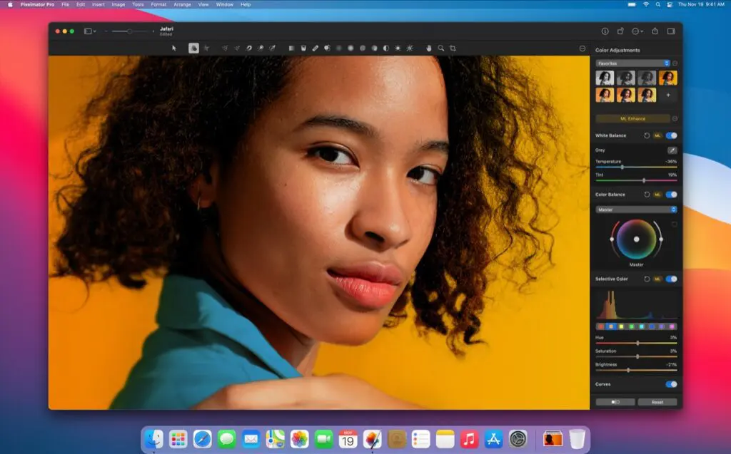 Exclusief voor Mac-gebruikers biedt Pixelmator Pro voor €49,99 een moderne bewerkingservaring. De software maakt slim gebruik van Apple’s Core ML voor AI-functies en Metal voor snelle rendering. De gebruikersinterface is prachtig vormgegeven en voelt als een echte Mac-app. RAW-bewerking, laagmaskers en kleurcorrectie – alles zit erin.